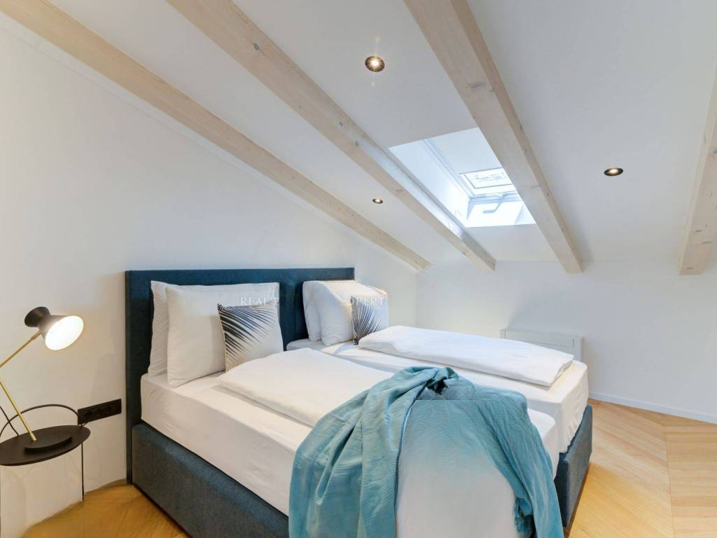 Апартамент, расположенный на втором этаже и мансарде, имеет общую жилую площадь 100 м². Он включает в себя входной холл, просторную гостиную, столовую и полностью оборудованную кухню открытого плана. На нижнем этаже расположена одна спальная комната и ванная. Мансардный этаж включает галерею и спальную комнату с ванной комнатой. В дополнение к внутреннему пространству, апартаменту принадлежит участок сада площадью 99 м², идеально подходящий для отдыха и приемов пищи на открытом воздухе.