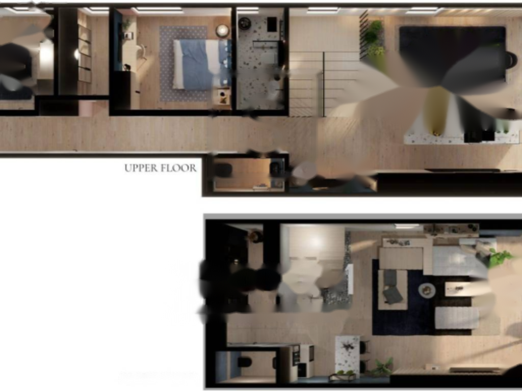 Квартира расположена на двух уровнях в трехэтажном здании с лифтом. Первый уровень включает три спальни, гостевой туалет, две ванные комнаты, просторный холл, прачечную, а также открытую зону гостиной с кухней и столовой, выходящую на крытую террасу. На втором уровне расположены винный погреб, два туалета, дополнительная гостиная и еще одна крытая терраса.