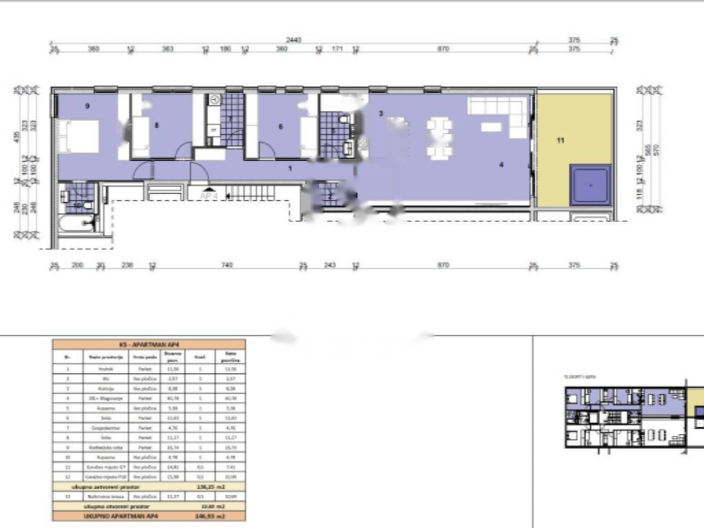 Предлагается эксклюзивная квартира площадью 146,93 м² с панорамным видом на море в Волоско, на Адриатическом побережье. Это современная новостройка с тремя спальнями, гостевым туалетом, двумя ванными комнатами, коридором и просторной зоной открытой планировки, объединяющей гостиную, кухню и столовую. Из зоны открытой планировки есть выход на крытую террасу с джакузи, рассчитанным на шесть человек.