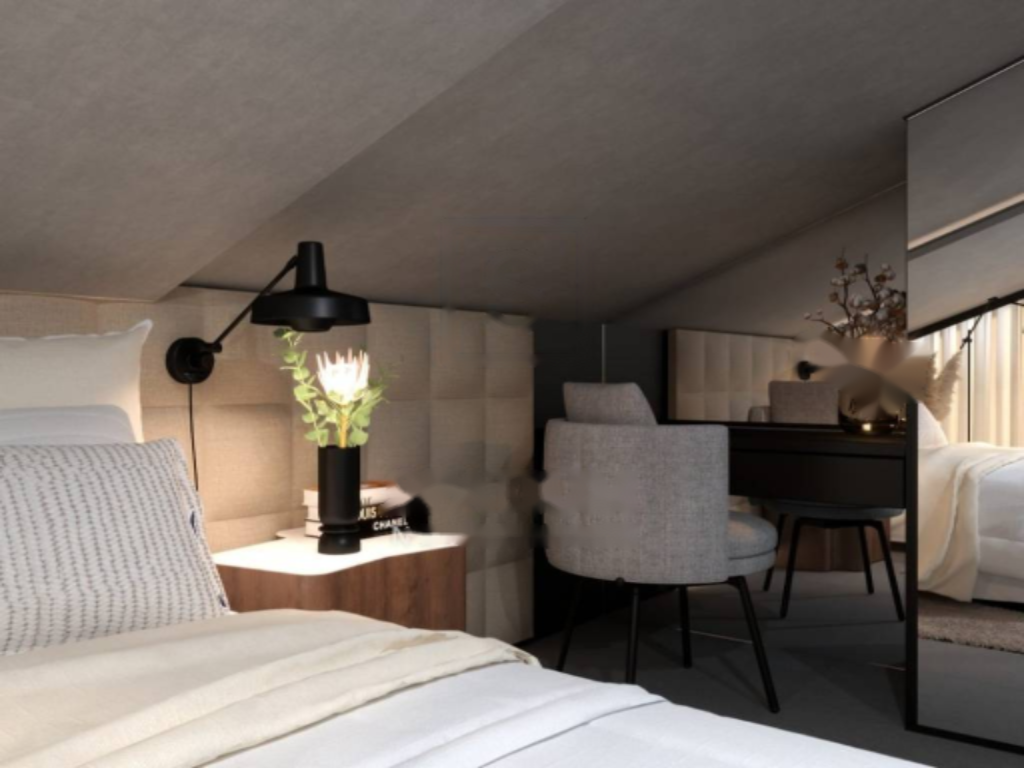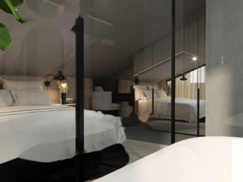 Апартамент включает три спальни, гостевой туалет, кладовую, гардеробную, две ванные комнаты и просторную открытую гостиную с кухней и столовой, откуда можно выйти на террасу площадью 140 м². На террасе расположен подогреваемый бассейн с видом на Кварнерский залив.