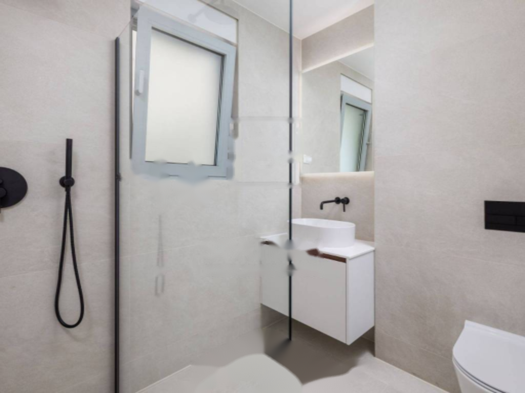 Общее жилое пространство составляет 93,90 м² и включает две спальные комнаты, две ванные комнаты, отдельный туалет, а также объединенную зону кухни и гостиной с обеденной зоной. Для вашего удобства предусмотрено одно место в гараже и дополнительное на общей парковке.