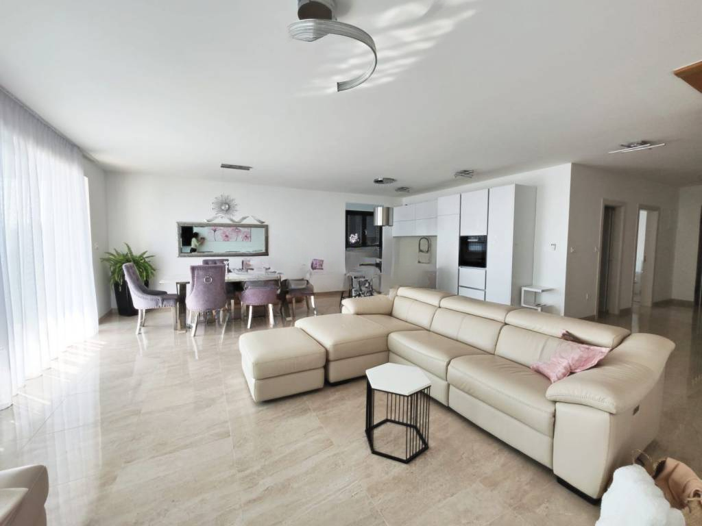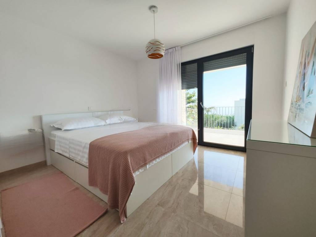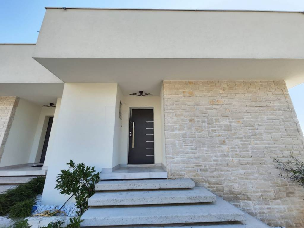 Вилла оснащена качественной алюминиевой столяркой с раздвижными стенами, противовзломными дверями и полами с плиткой, имитирующей мрамор. Мраморные лестницы ведут на первый этаж.