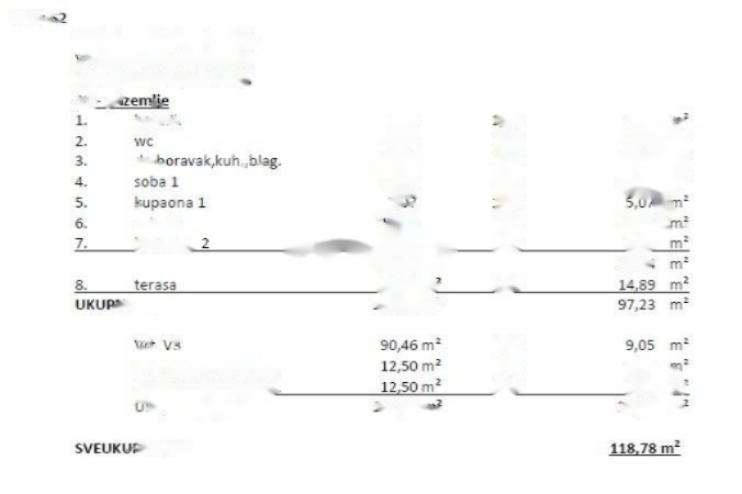 Квартира включает в себя две спальни, две ванные комнаты, отдельный туалет, просторный холл, кухню, столовую и гостиную. Внутренняя площадь составляет 82,34 м², а общая — 109,73 м², включая большую террасу площадью 29,78 м².