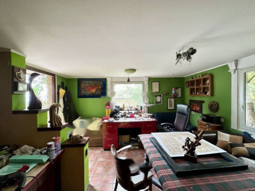 На огороженной территории имеется дополнительное здание площадью 20 м², использующееся как ателье, и несколько парковочных мест, одно из них крытое. Также на участке расположены два колодца и открытый гриль.