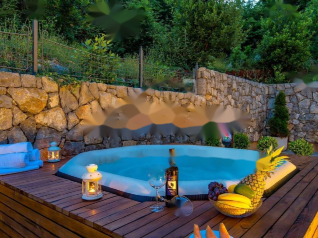 На благоустроенной территории имеются бассейн и джакузи, а также огороженная парковка для нескольких автомобилей. Все комнаты оснащены системой независимого кондиционирования для охлаждения и обогрева, что делает проживание комфортным в любое время года.