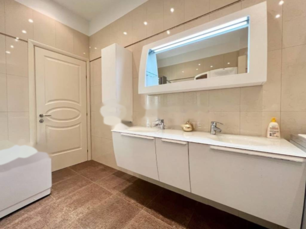 Квартира также имеет два балкона, террасу с летней кухней во дворе виллы, гараж и парковочное место. Недавно полностью отремонтирована и современно обставлена. Интерьер улучшают натяжные потолки, конструкции из гипсокартона, эластичная бетонная плита с волокнами и перлитом. Деревянные окна из лиственницы и алюминиевые жалюзи с пультом дистанционного управления.