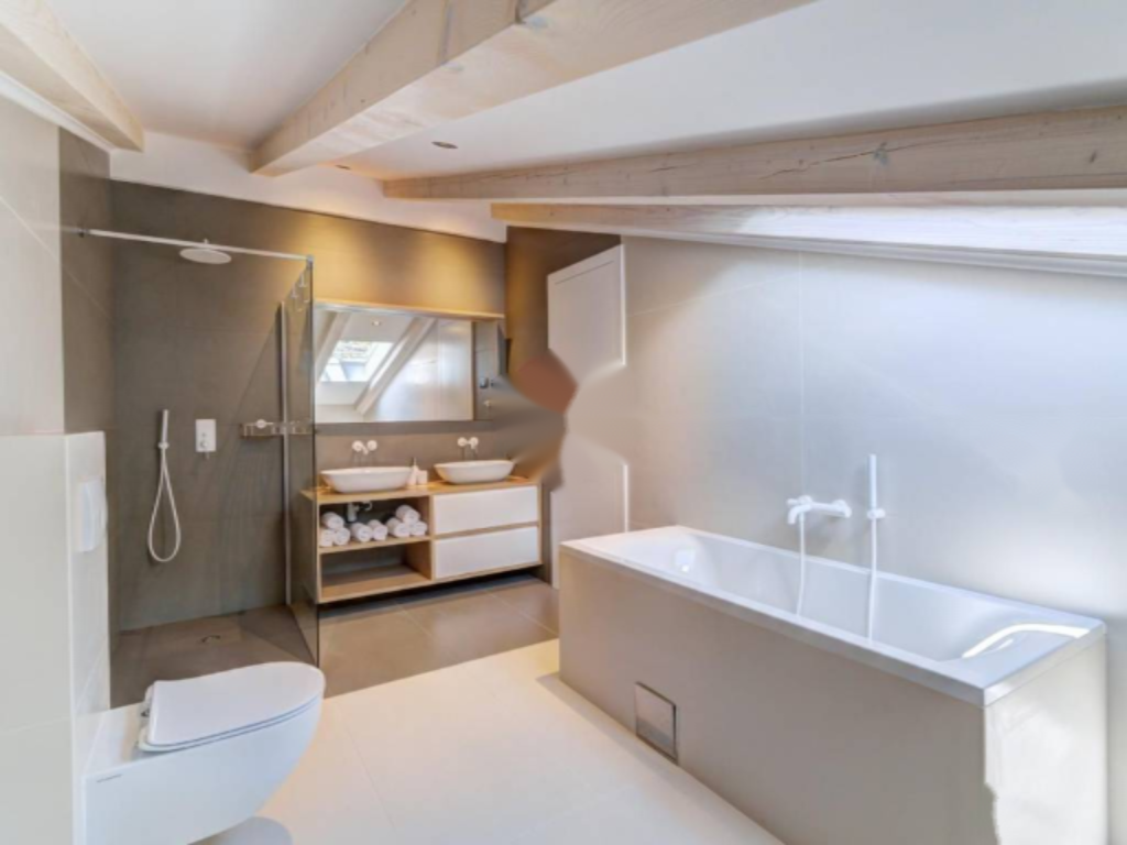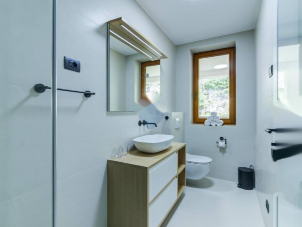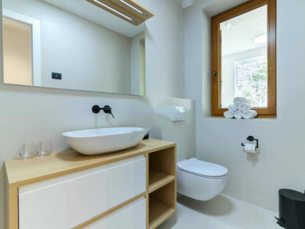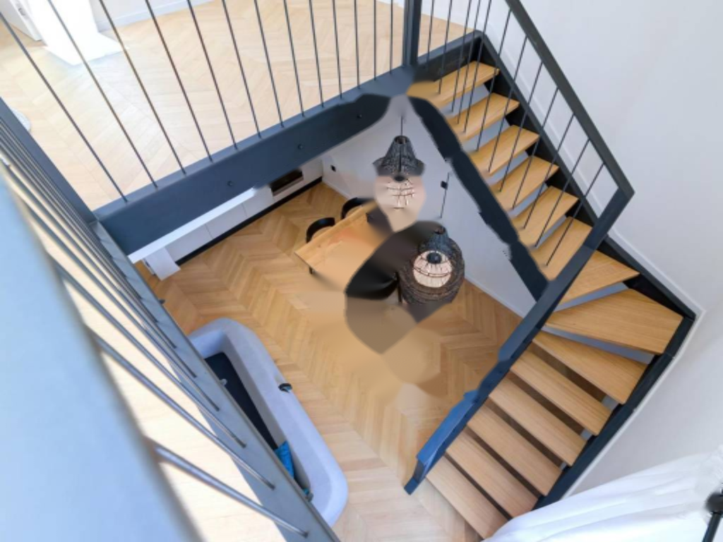 На втором этаже апартамента расположены: спальня, гостиная с кухней и столовой зоной, ванная комната и коридор. На мансардном этаже — еще одна спальня и ванная комната. Внутренняя отделка выполнена из высококачественных материалов: керамика Appiani и Florim, арочная лестница из древесины лиственницы и протекущей дверной системы.