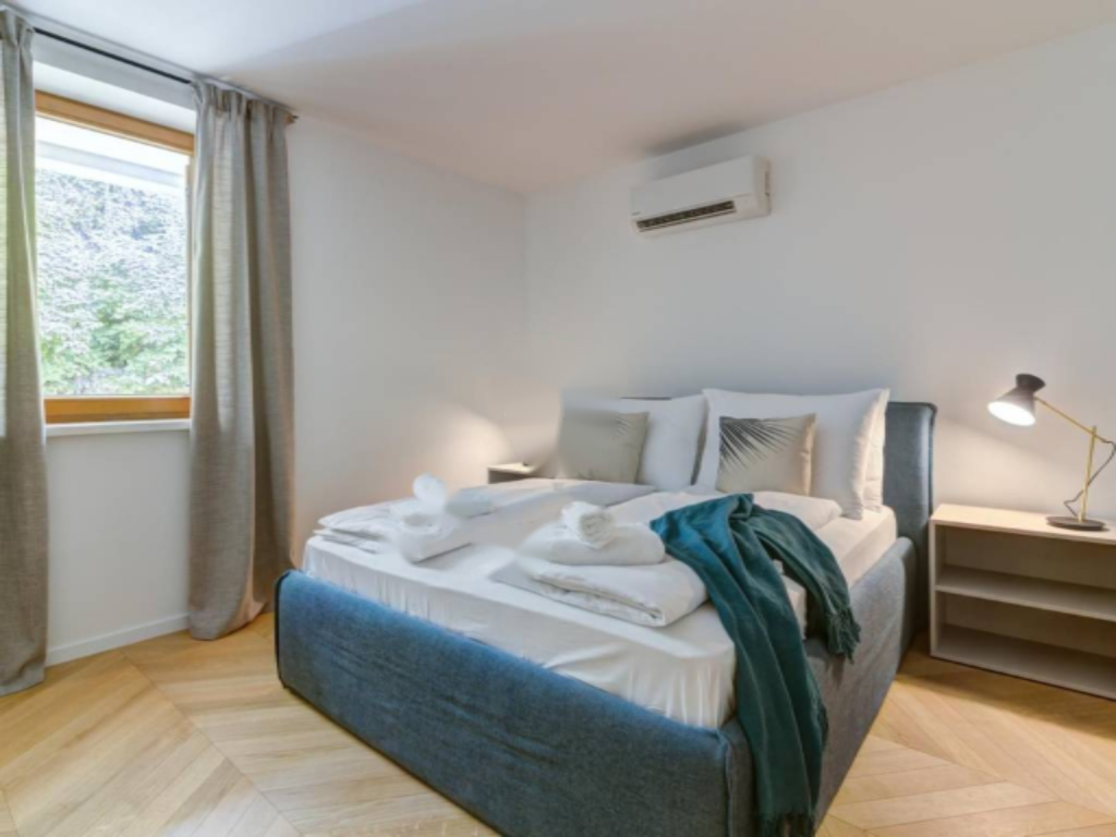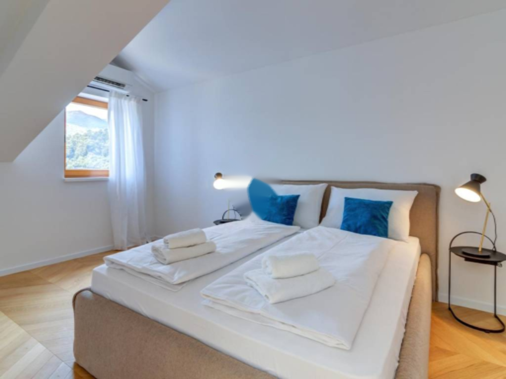 Просторный, двухуровневый квартира площадью 132 м² расположен в престижном курортном комплексе на первой линии моря. Из окон квартиры открывается великолепный вид на море, острова и Опатийскую ривьеру. Комплекс включает 15 апартаментов с такими удобствами, как подземная гараж, лифтом и ухоженные сады.