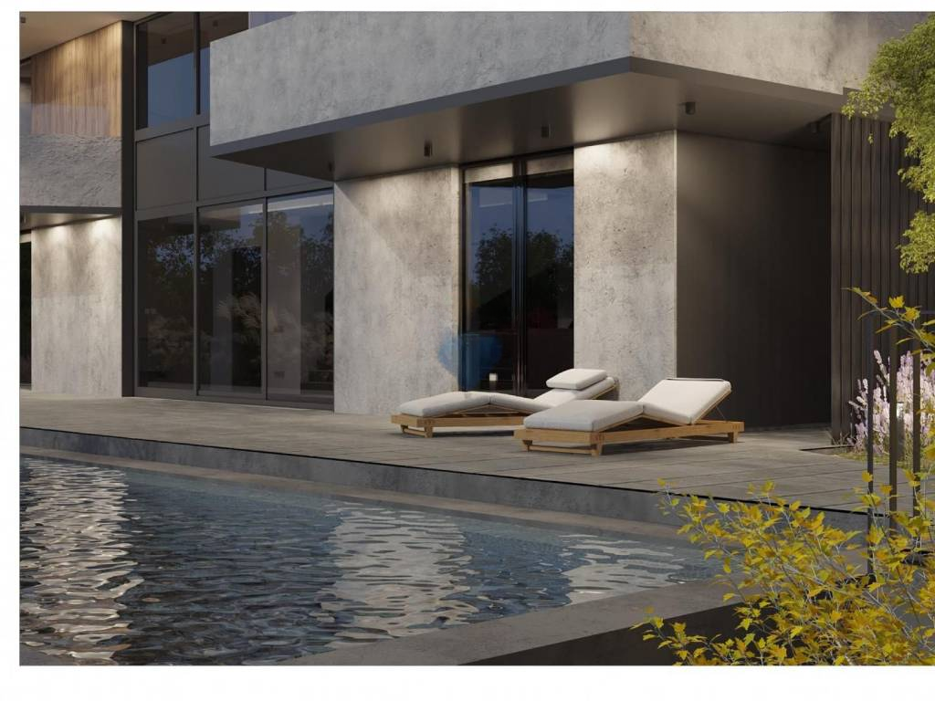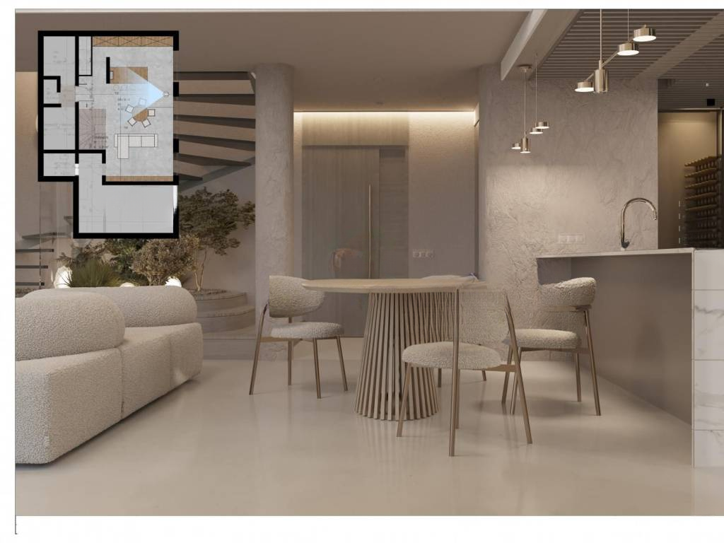 На цокольном этаже располагаются уютная гостиная с кухней и столовой, фитнес и велнес зона с отдельным санузлом, кладовая/прачечная, техническое помещение, еще один туалет и холл. Из цокольного этажа можно выйти на просторную террасу с бассейном.