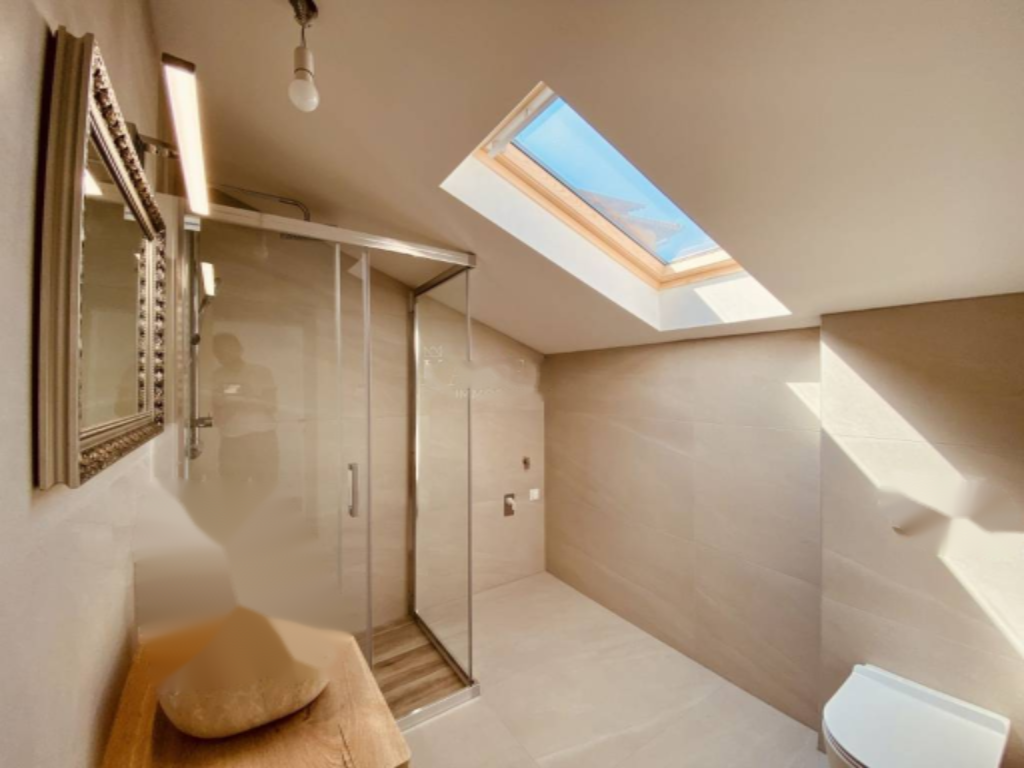 Квартира занимает всю площадь чердака и располагает просторной зоной открытого плана — гостиная с кухней и столовой — общей площадью около 40 м². Также имеются две спальни, ванная комната, отдельный туалет, а также техническое помещение. Изоляция крыши и стен выполнена с использованием каменной ваты, установлен новый теплоизоляционный фасад. Все коммуникации, включая водоснабжение и электропроводку, обновлены. Для отопления и кондиционирования воздуха используется современная тепловая установка LG, дополненная фанкойлами Olimpia Splendid и бойлером для горячей воды. В ванной и туалете имеется электрический подогрев пола.