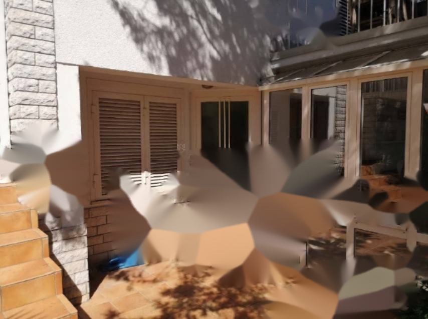Отопление в главном апартаменте осуществляется с помощью центрального отопления на жидком топливе, а в цокольном — инфракрасным электрическим подогревом пола. В задней части виллы находится садовый домик площадью около 7 м².