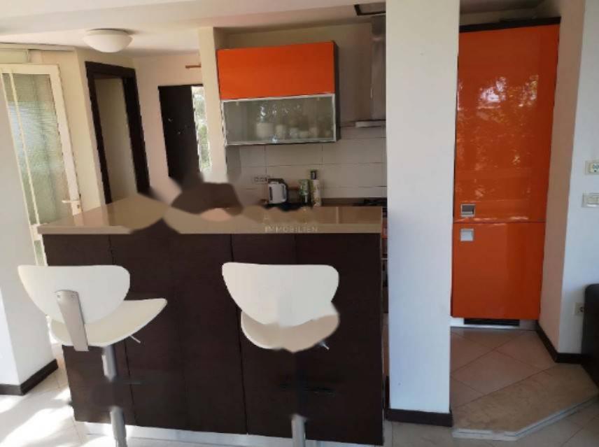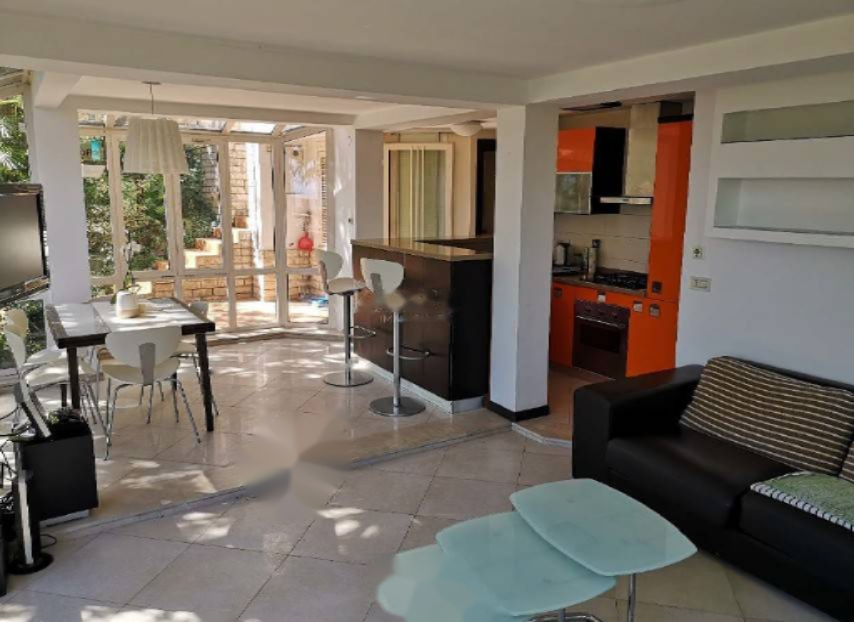 Апартамент в цокольном этаже площадью 60 м² предлагает современный дизайн и состоит из прихожей, двух спален, одной ванной комнаты, гостиной и кухни-столовой. Большие окна в этом апартаменте обеспечивают идеальное соединение с садом, что делает его особенно привлекательным. Апартамент полностью меблирован и готов к проживанию.