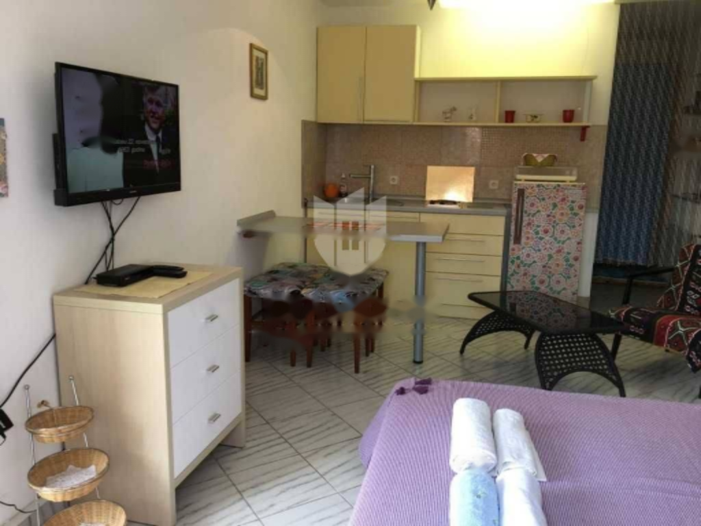 Трехэтажное здание включает два однокомнатных, четыре двухкомнатных апартамента и один студио. Особенностью каждого является наличие террас, откуда открывается прекрасный морской пейзаж. В просторном дворе находятся бассейн, зона для загара и открытый камин для барбекю, что создает условия для комфортного отдыха на открытом воздухе.
