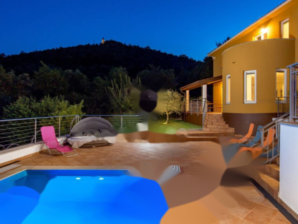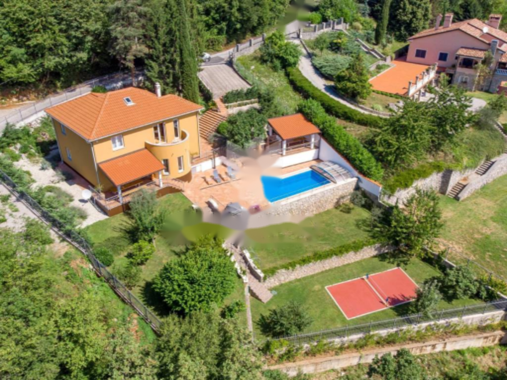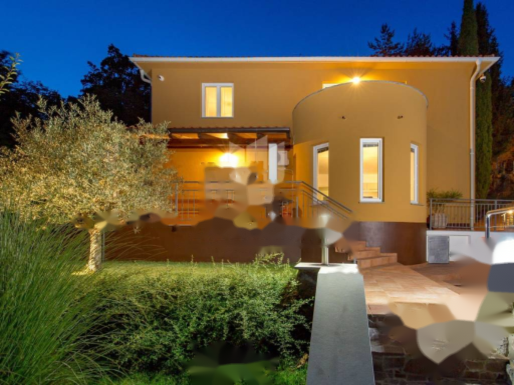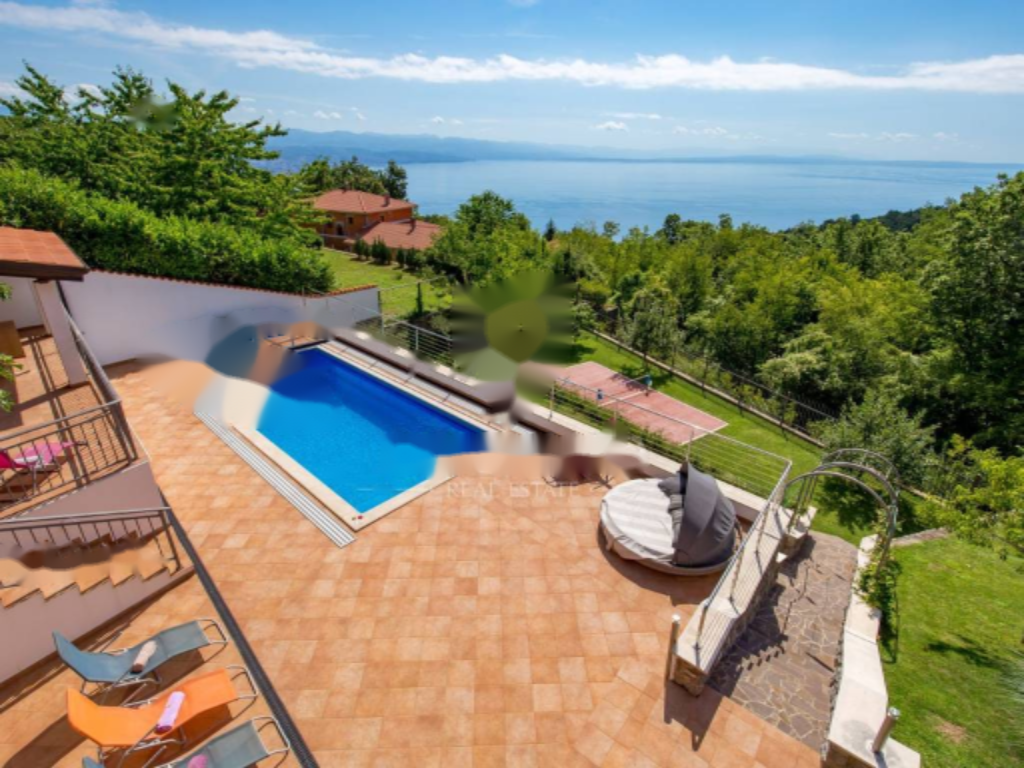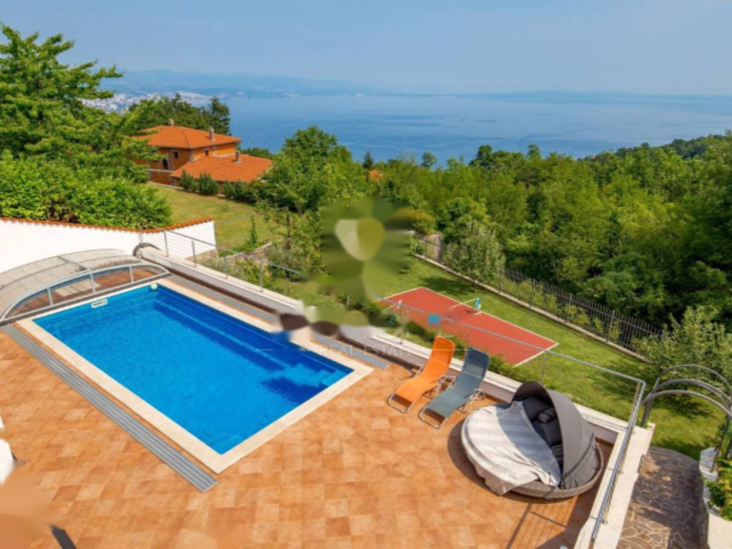 Предлагается на продажу семейный дом в живописных окрестностях Опатии с открытым видом на море. Площадь дома составляет 200 м², расположение на трех уровнях: подвал, первый и второй этаж. В подвале находится фитнес и спа-зона для релаксации.