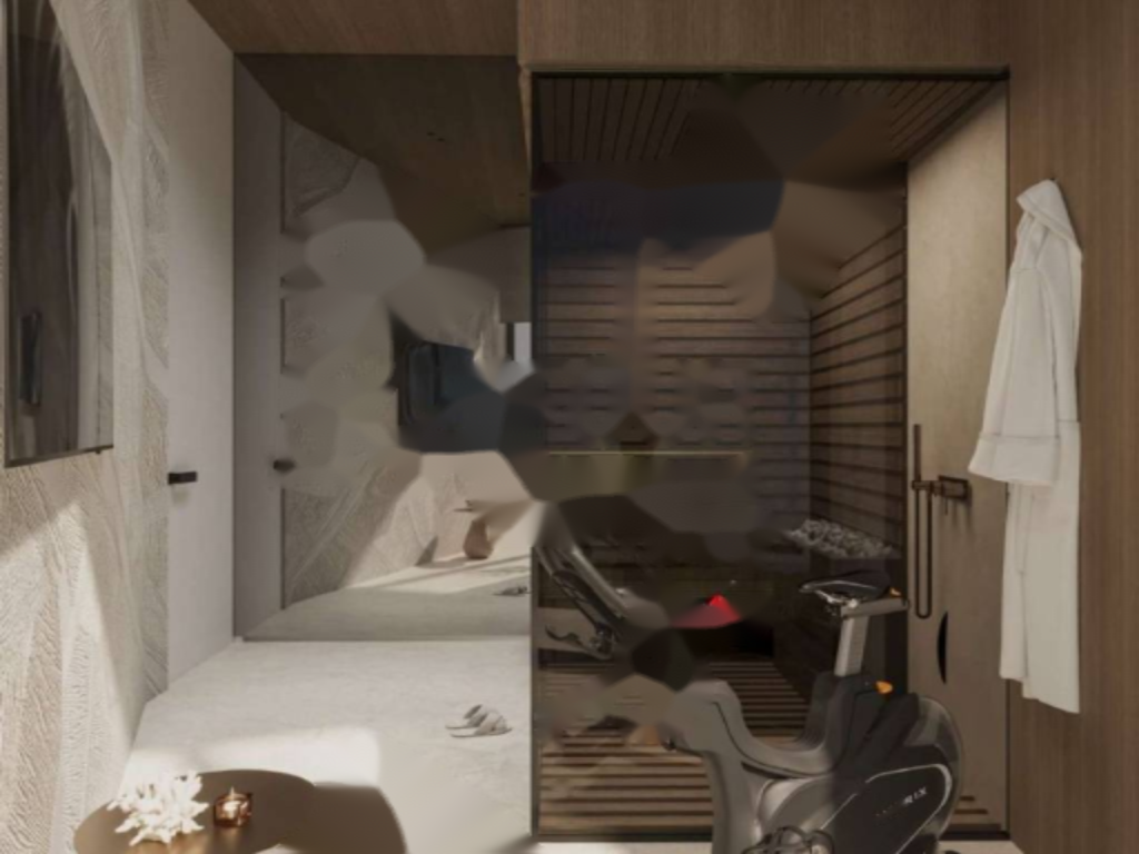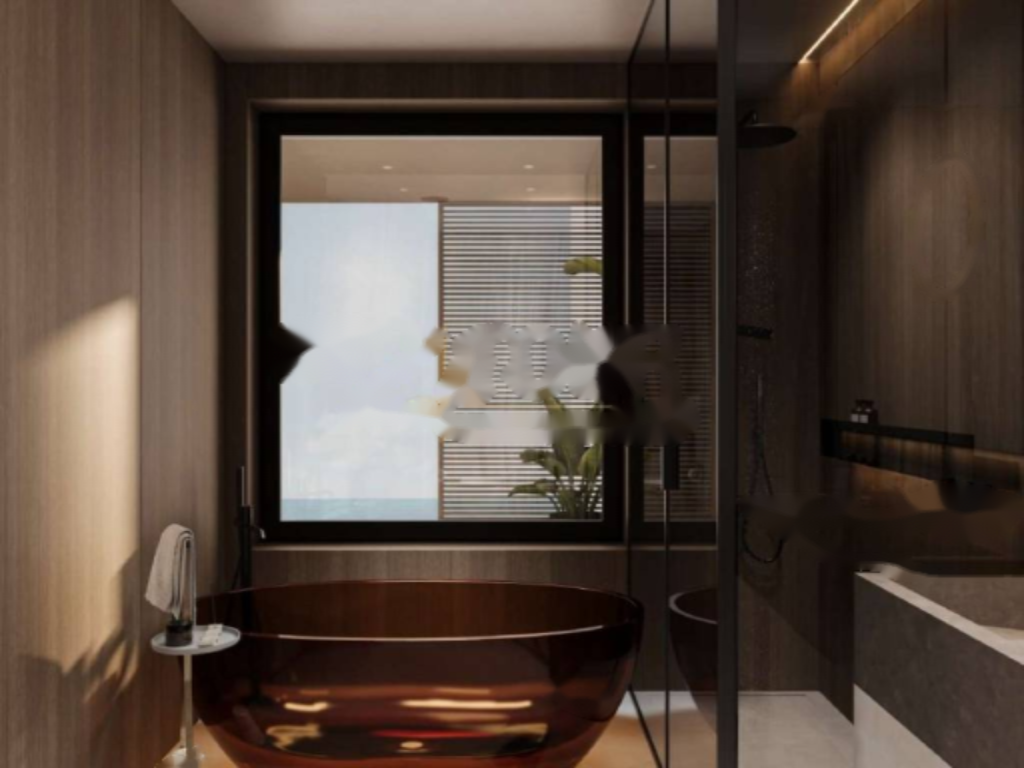 На первом этаже виллы находится гостиная открытого типа, соединенная с кухней и обеденной зоной, спальня, ванная комната, а также зона для велнесс и отдыха. Внутренней лестницей можно подняться на верхний этаж, где расположены три спальни, каждая из которых имеет собственную ванную комнату. Все комнаты имеют выходы на просторную террасу площадью 25 м² с потрясающим видом на море и залив.
