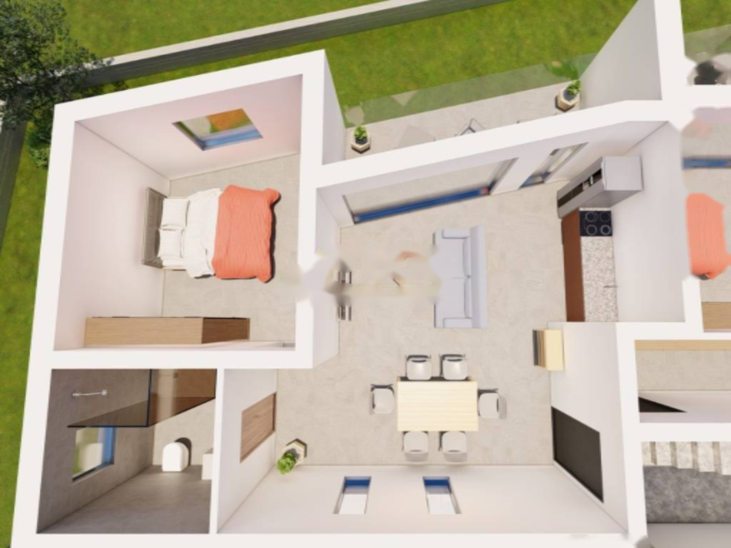 Новостройка двухэтажного апартамента в Ике, общей площадью 98.89 м². Апартамент расположен на первом этаже здания и включает два этажа, каждый из которых предлагают уникальный вид на море.