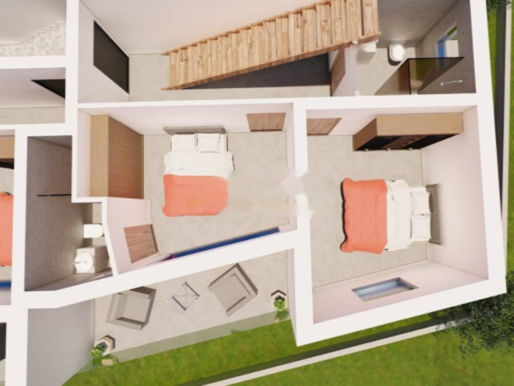 К апартаменту прилагаются два парковочных места, одно из которых оборудовано зарядкой для электромобиля. Существует возможность постройки бассейна и приобретения до 500 м² сельскохозяйственной земли перед апартаментом, что является редкой возможностью для улучшения жилой площади.