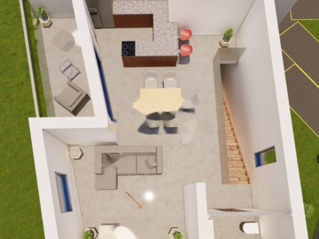 На втором этаже расположены гостиная и кухня с дополнительным санузлом. Терраса этого этажа имеет выход на крышу площадью 60 м², оснащённую электроснабжением и водоснабжением, что делает её идеальной для установки гриля, джакузи и создания солнечной обсерватории с панорамным видом на море.