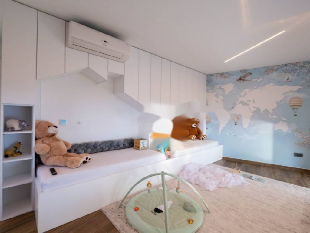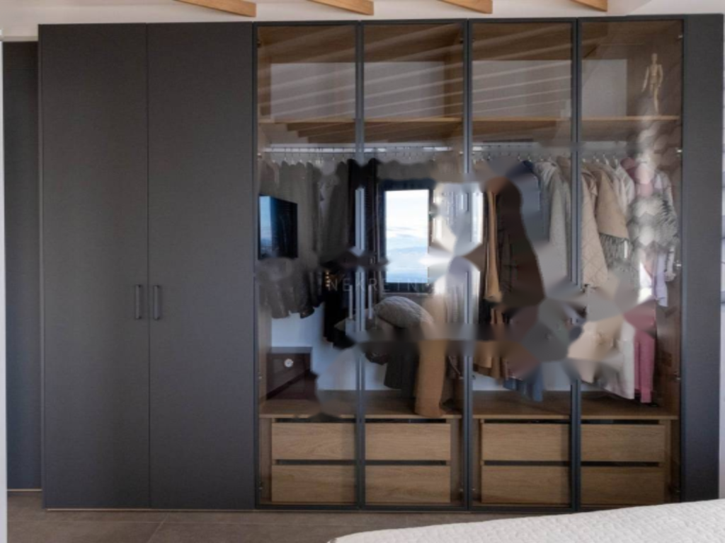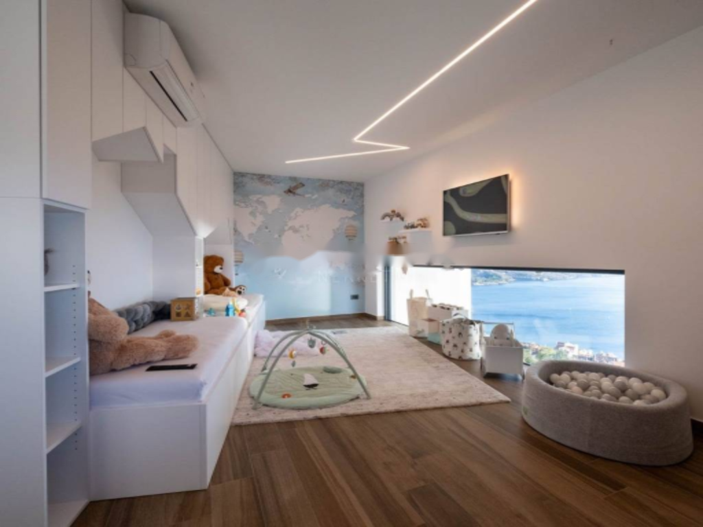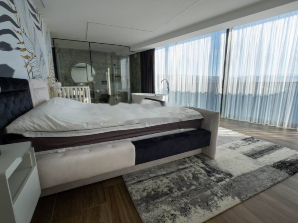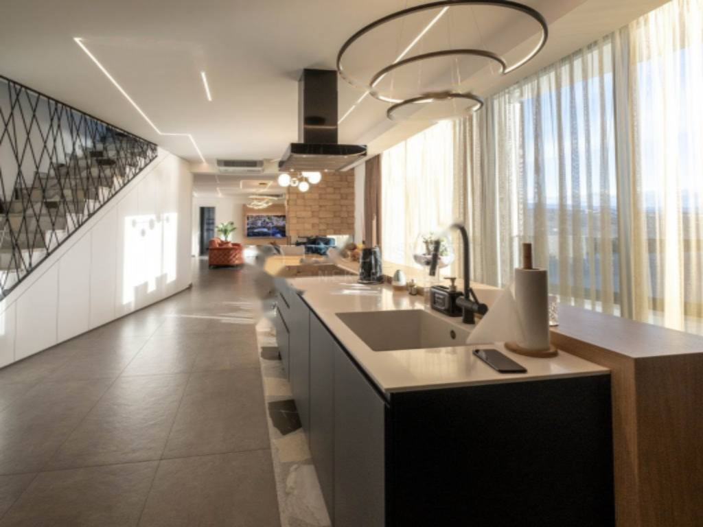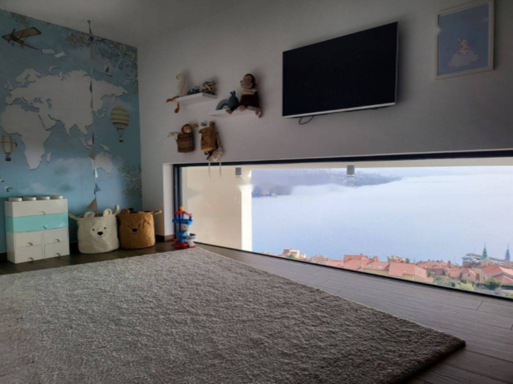 Квартира украшена большими раздвижными стеклянными панелями, которые наполняют помещение естественным светом и обеспечивают открытый вид на море и Кварнерский залив из каждого угла. На верхнем этаже находятся две спальни, каждая с собственной ванной комнатой. Главная спальня оснащена роскошной стеклянной ванной комнатой с ванной, гардеробной и частной террасой, которую можно застеклить и преобразовать, например, для небольшого велнеса и тренажерного зала.