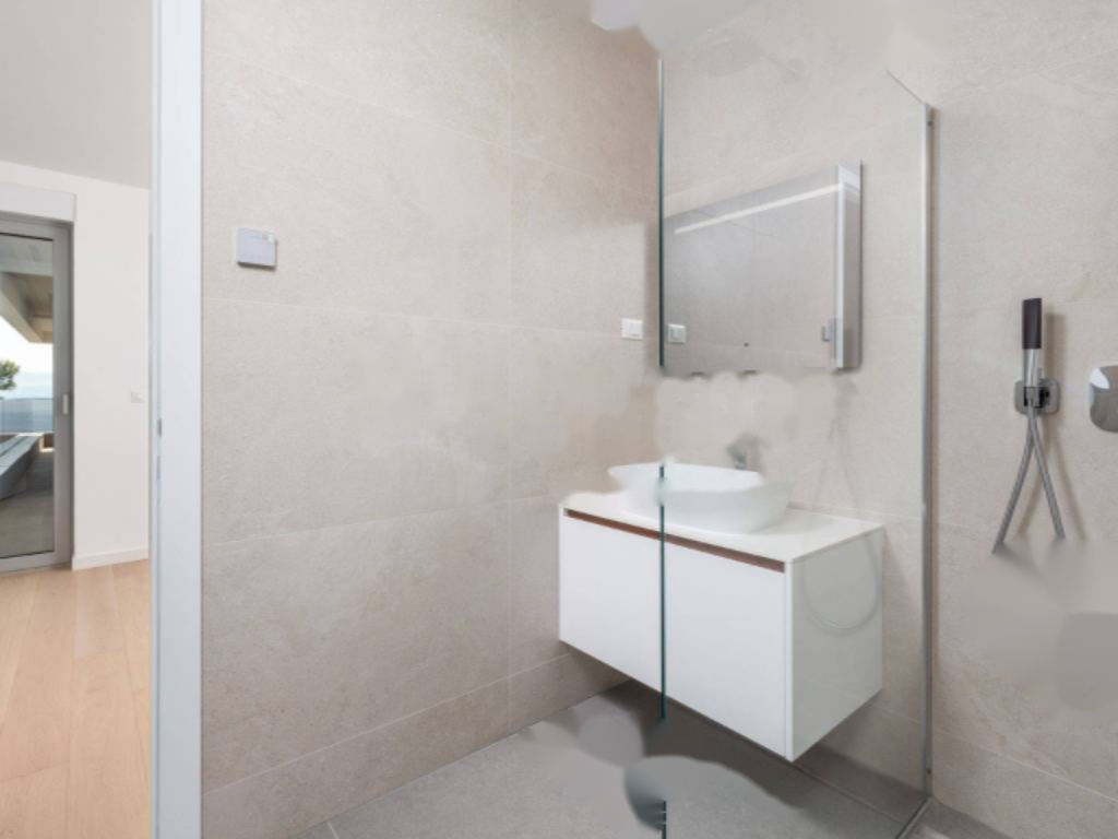 Квартира оборудована высоким качеством: алюминиевые оконные рамы с электрическими жалюзи, премиальные сантехнические изделия, система отопления и подготовки горячей воды с тепловыми насосами, а также бронированная входная дверь.
