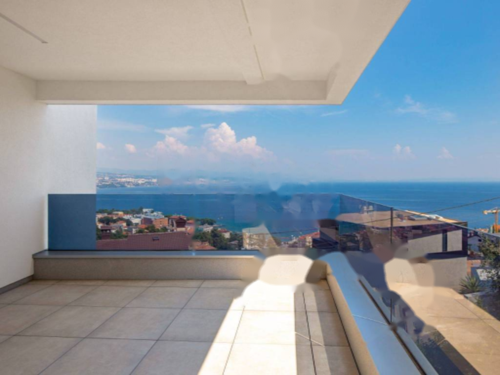 Продается роскошная квартира в новостройке с видом на море в сердце Опатии. Общая площадь — 129,39 м², из которых 101,29 м² — чистая площадь с учетом балкона в 19,84 м². Расположена на третьем этаже здания с лифтом, на территории комплекса имеется общий бассейн.