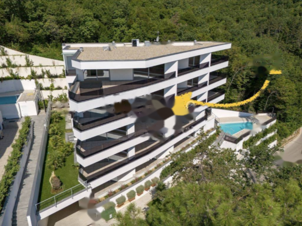 Предлагается на продажу роскошная квартира в новостройке с бассейном и подземным гаражом, расположенная в самом центре Опатии. Идеальная локация дарит потрясающий вид на море . Квартира занимает площадь 261 м² и находится в здании из трех этажей без лифта.