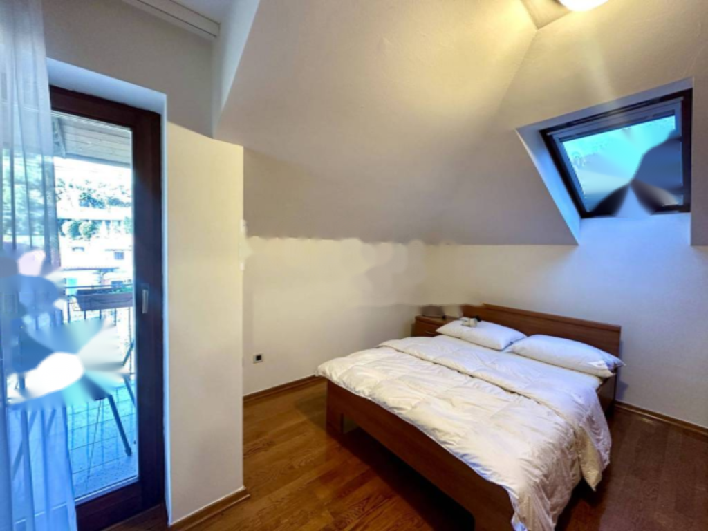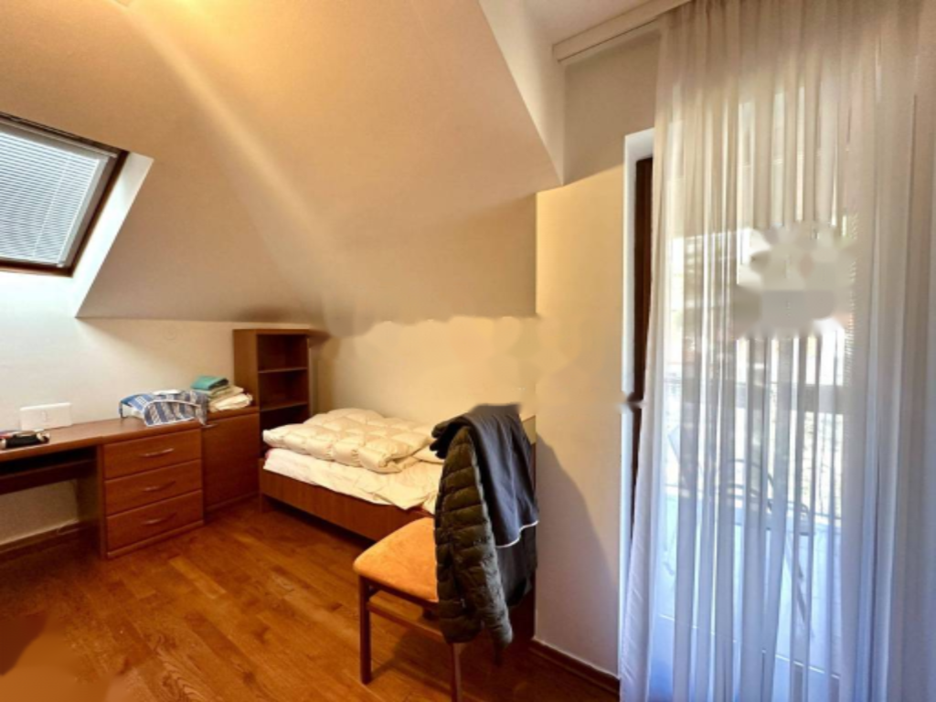 Второй уровень представляет собой мансарду с тремя уютными спальнями и балконом, обращенным на восток. Спальные помещения обеспечивают уединение и покой, что идеально подходит для отдыха. Высокие потолки на этой уровне добавляют ощущения простора. Здесь также расположена вторая ванная комната.