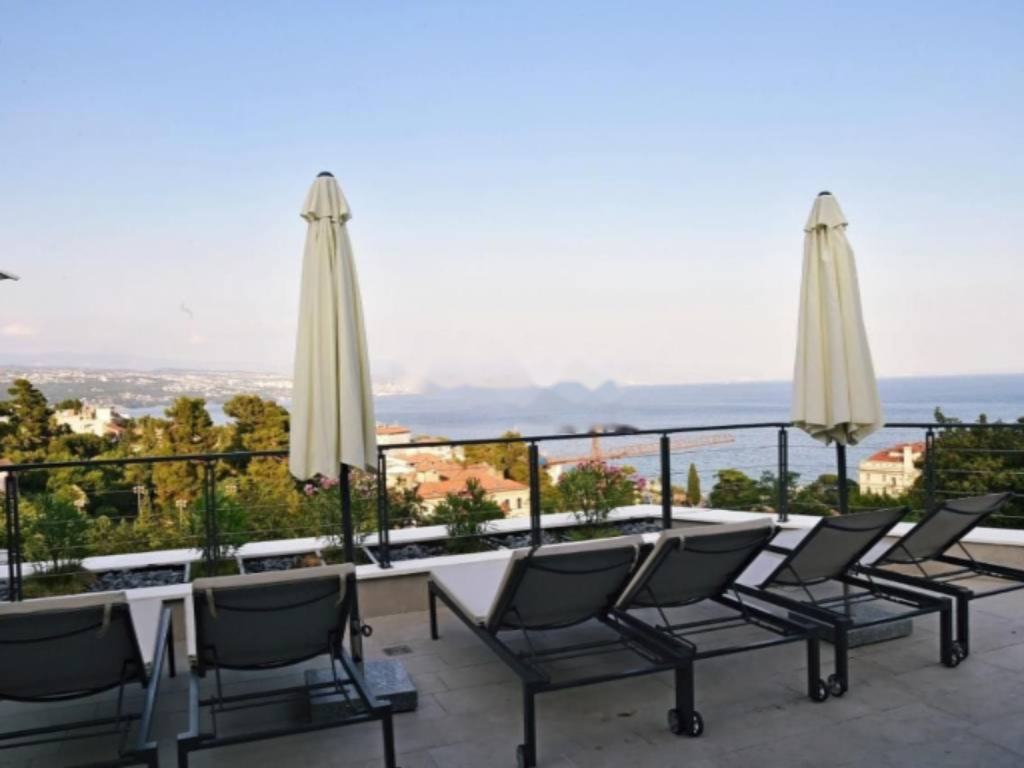 Предлагается величественная вила, представляющая собой идеальный вариант для инвестиций в недвижимость, расположенная всего в 700 метрах от центра Опатии. Этот дуплекс предлагает необычайную панораму на Кварнерский залив и исторический центр города. ️
