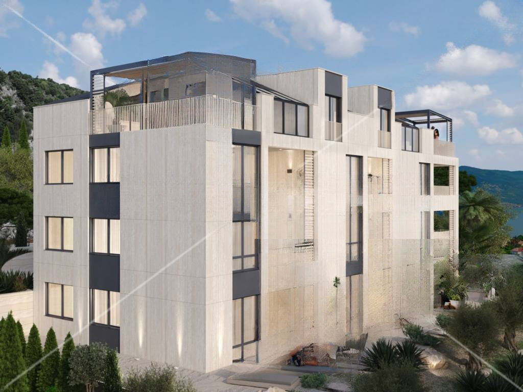 Квартира расположена в здании, сконструированном с использованием железобетона и оборудованным подземной парковкой. Фасад отделан современной вентилируемой системой от LAMINAM, подчеркивающей стильный облик объекта. Высококачественная внешняя отделка выполнена с использованием ALU SHÜCO столярных элементов с тройными стеклопакетами, заполненными аргоном, что обеспечивает отличную изоляцию.