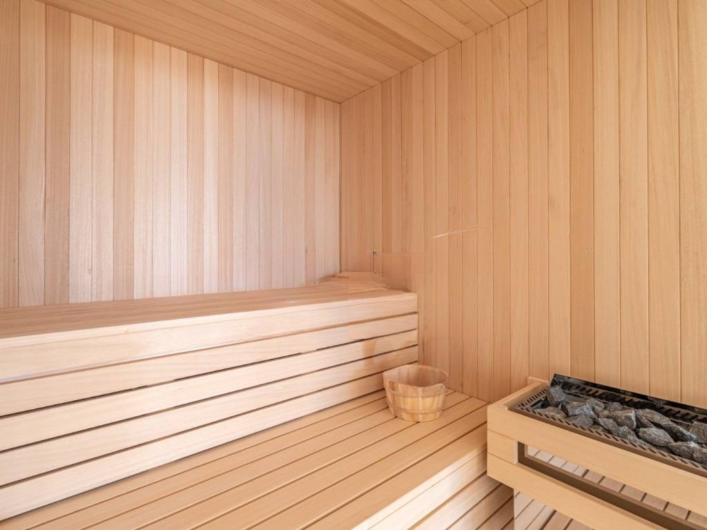 Внутреннее пространство включает в себя три спальни, открытую зону гостиной с кухней и столовой, две ванные комнаты, отдельный туалет, рабочий кабинет и просторный балкон площадью 23,4 м². Используются роскошные материалы: итальянская плитка класса MIRAGE, сантехника HANSGROHE и душевые кабины NOVELLINI. Подогрев полов в ванных комнатах и гостиной с применением инфракрасной технологии обеспечивает дополнительный комфорт.