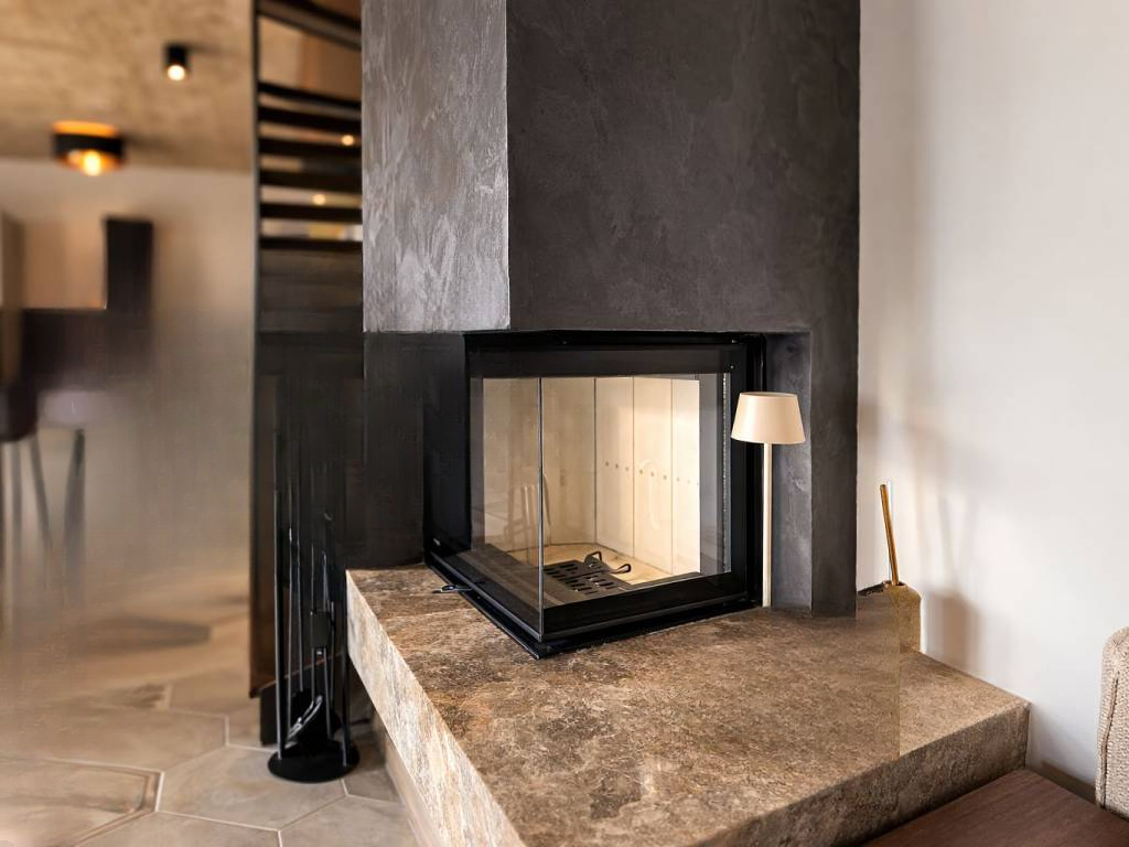 Дом является двухэтажным и включает в себя просторную гостиную зону с камином, современную кухню с обеденной зоной и гостевой санузел с ванной на первом этаже. Второй этаж занимает большая квартира с тремя спальными комнатами. Каждая спальня оборудована собственной ванной комнатой и WC, а также имеет выход на балкон с видом на море. Из гостиной можно пройти в зону отдыха с сауной, турецким душем и джакузи.