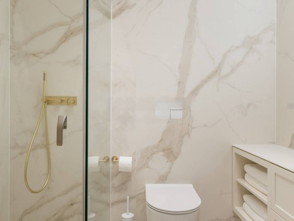 Качественное оснащение: в ванных комнатах установлено электрическое подогреваемое покрытие, в остальных помещениях - система обогрева и охлаждения через фанкойлы с возможностью индивидуальной настройки температуры. Полы покрыты трехслойным паркетом из дуба, подчеркивающим тепло и элегантность пространства. Деревянные оконные рамы не только сохраняют исторический характер здания, но и обеспечивают прекрасную тепло- и звукоизоляцию.