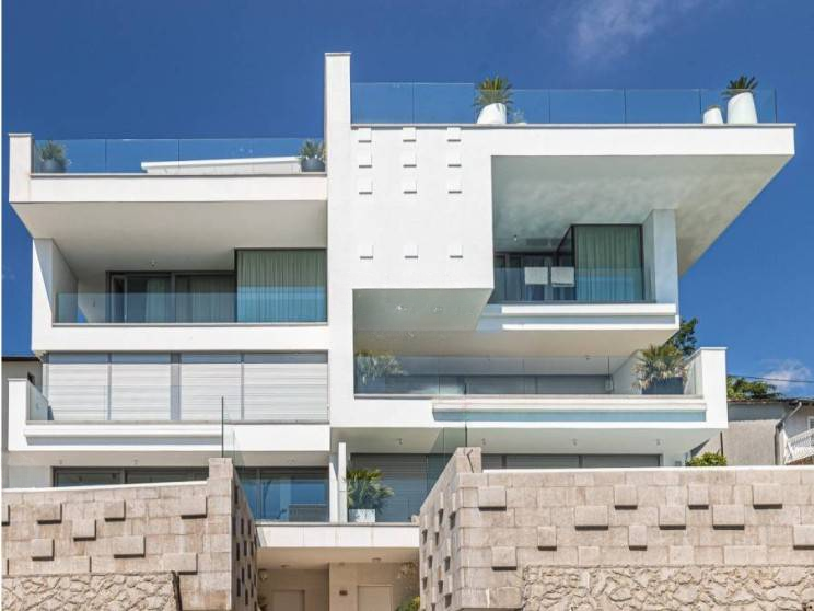 Элитный дуплекс-пентхаус в центральной части Опатии расположен всего в 30 метрах от моря и знаменитой прогулочной набережной Лунгомаре. Этот просторный современный пентхаус находится в одном из лучших жилых комплексов города, построенном в 2021 году, и занимает второй и последний этаж здания.