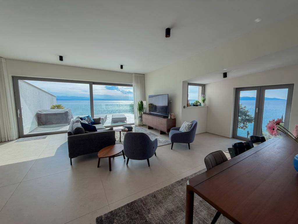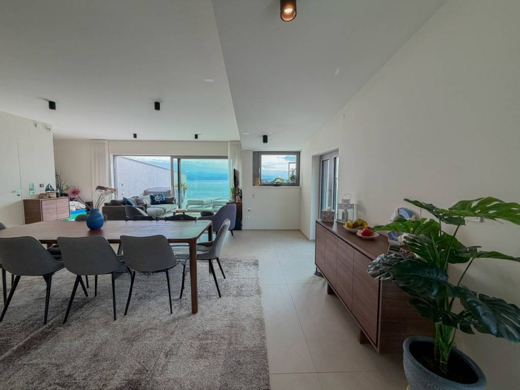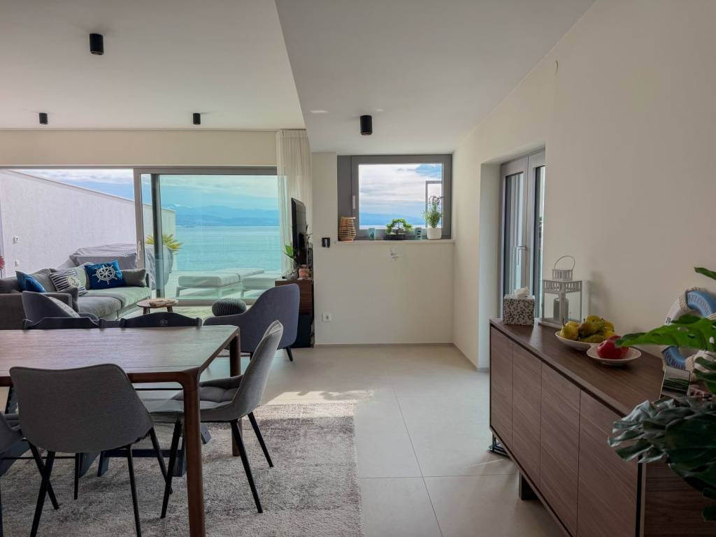 Лоджия и терраса открывают впечатляющий вид на море и весь Кварнерский залив. Квартира оснащена стильной системой кондиционирования и тёплыми полами во всех комнатах. В интерьере использованы высококачественные материалы, такие как паркет и керамика, а управление домом возможно через интегрированную систему "умный дом".✨