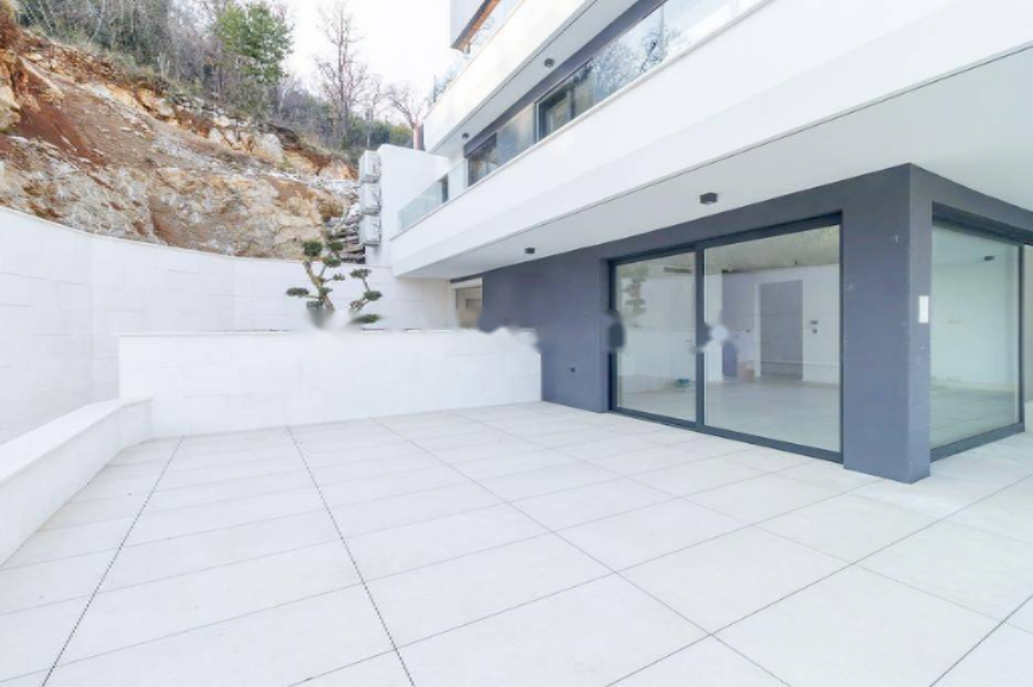 Комплекс, расположенный на холме над городом, включает всего 8 роскошных апартаментов. Этот конкретный объект находится на пятиуровневом этаже, в здании с подвалом, где размещены гаражи и кладовые, на первом этаже с двумя апартаментами и двумя этажами с тремя апартаментами на каждом.
