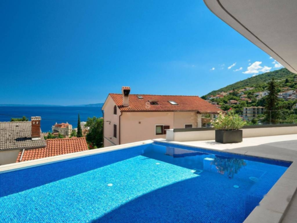 В Опатии предлагается на продажу люксовая квартира, сочетающая в себе современный дизайн и уникальное удобство проживания. Она расположена на высоком первом этаже и включает три спальни и просторную гостиную с захватывающим видом на Адриатическое море.