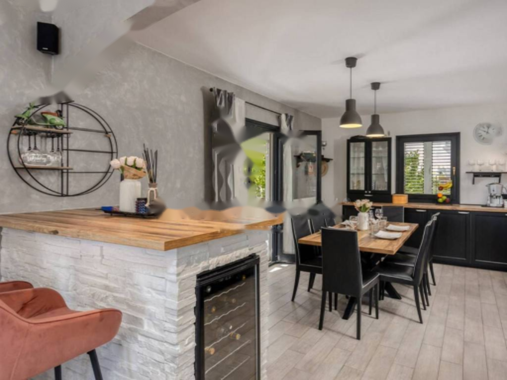 Объект включает четыре просторные спальни, две ванные комнаты, уютную гостиную, оборудованную кухню, кладовую, кабинет и террасу около 15 м². В тщательно ухоженном саду присутствуют зона для барбекю и бассейн с джакузи, что дарит ощущение уединения и комфорта. Из дома открывается замечательный вид на море.