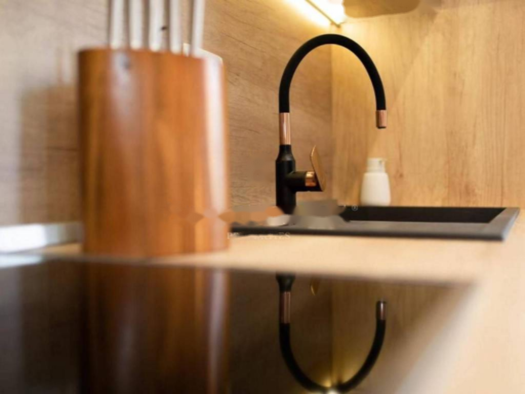 Квартира включает одну комнату и кухню, совмещенную с гостиной. Ванная комната оформлена на высоком уровне. Особенностью являются два балкона, с которых открывается замечательный вид на море.