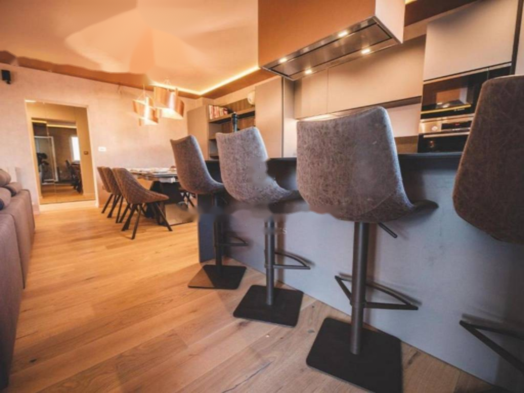 На цокольном этаже находится апартамент площадью 96 м² с двумя спальнями и гостиной. На первом и втором этажах расположены два более просторных апартамента по 152 м² и 156 м² соответственно, каждый из которых включает четыре спальни и гостиную. Все апартаменты оформлены в современном стиле и оборудованы по последнему слову техники.
