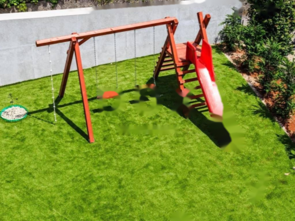Ухоженный участок площадью 700 м² предлагает уютное пространство с средиземноморскими растениями и местами для отдыха, бассейн и оборудованную зону для барбекю. Имеется гаражное место и общая парковка на семь автомобилей. В инфраструктуре также предусмотрены подземный резервуар для сбора дождевой воды емкостью 50 м³.