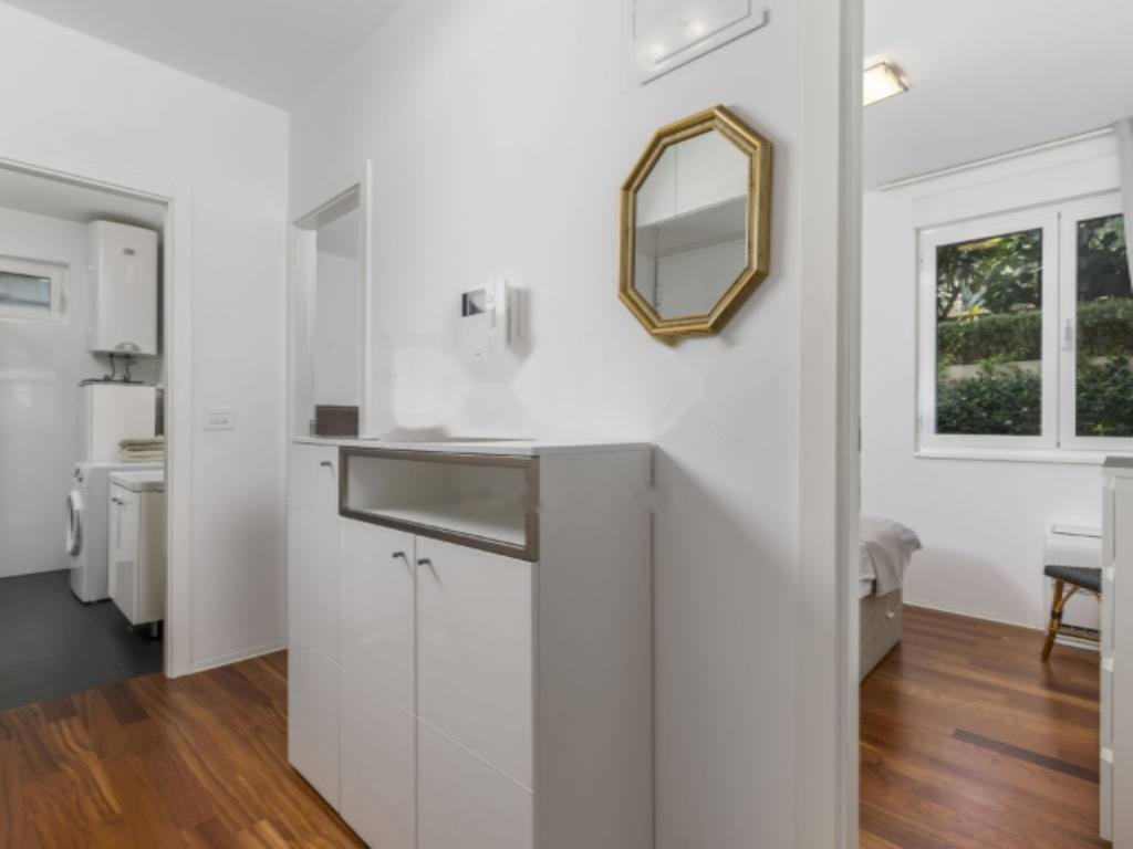 Объект расположен всего в 950 метрах от моря, что составляет 10 минут пешим ходом вниз и 15 минут вверх. До пляжа на автомобиле можно добраться за две минуты, до центра Опатии - за восемь.