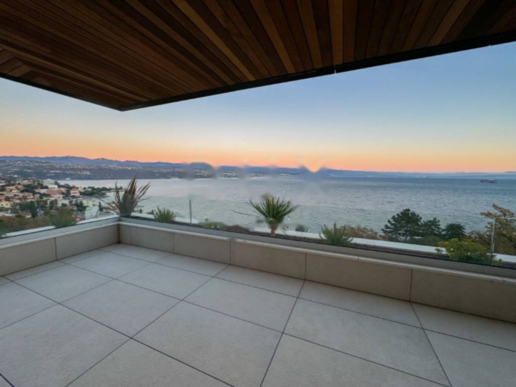 Предлагается исключительная возможность приобретения роскошной квартиры в центре Опатии с площадью 217 м², расположенной в новостройке над центром Опатии. Это уникальное предложение с панорамным видом на море и город, гаражом и личным бассейном. Квартира на втором этаже, состоит из просторной прихожей, объединенной кухни, гостиной и столовой площадью 59 м², трех спален, трех ванных комнат, рабочего кабинета, южного балкона площадью 63 м², а также террасы с бассейном 22 м² и участком с садом.