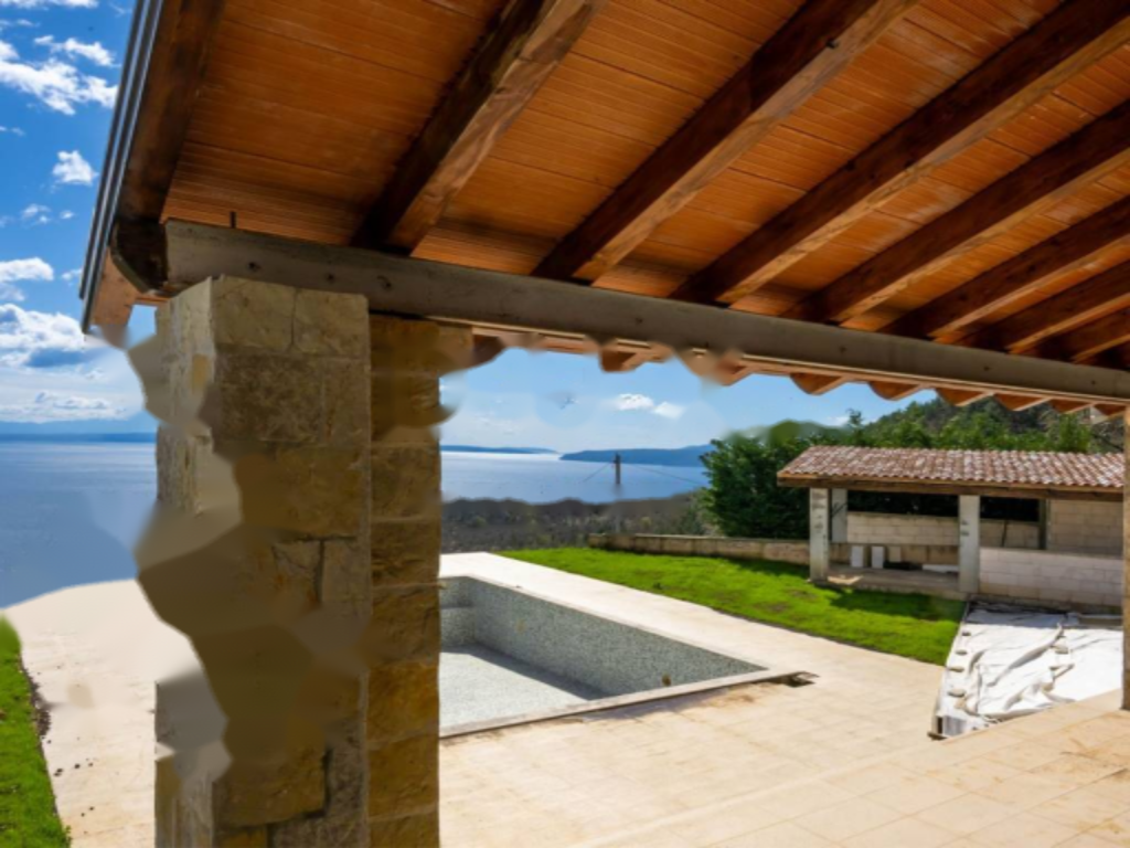 Предлагается для продажи роскошная недостроенная вилла на 500 м² в живописном месте в Ичичах, рядом с Опатией. На участке в 2500 м² расположены две виллы с бассейном и панорамным видом на Кварнерский залив. Южная ориентация и большие стеклянные стены на первом этаже создают неповторимую атмосферу для наслаждения морскими пейзажами .