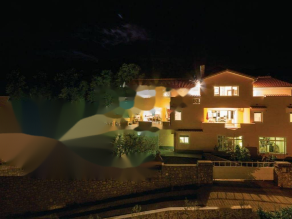 Участок виллы ухожен и включает камин, подземную цистерну для сбора дождевой воды объемом 30 м³, бассейн и обустроенный сад с овощами и фруктовыми деревьями. Перед зданием есть шесть парковочных мест.