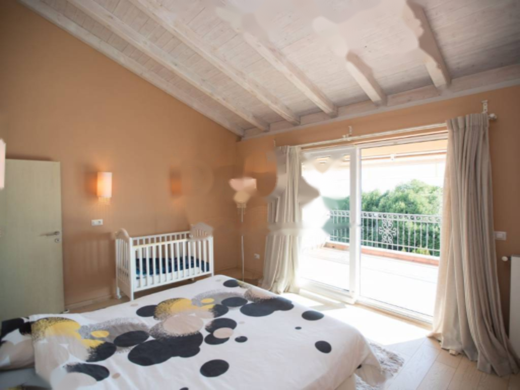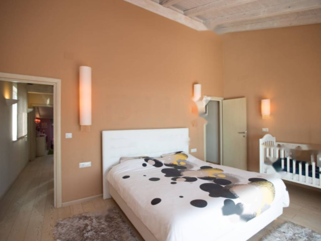 На нижнем уровне расположены просторная гостиная с кухней и застекленной столовой, спальни, еще одна зона отдыха с большой гардеробной, ванная комната, туалет и две обширные террасы. Верхний уровень включает мастер-спальню с собственной ванной комнатой и гардеробной, а также еще одну детскую спальню. Из верхней террасы открывается живописный вид на море. Апартамент оснащен центральным отоплением на пеллетах и кондиционерами, полностью меблирован с использованием качественных материалов и профессионально оформлен.