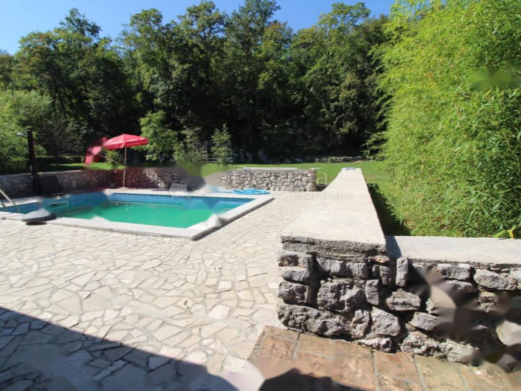 Земельный участок тщательно огорожен и ухожен, предлагая полную приватность и умиротворяющую атмосферу в окружении природы. Здесь расположен бассейн площадью 23 м² и оборудованное место для загара.