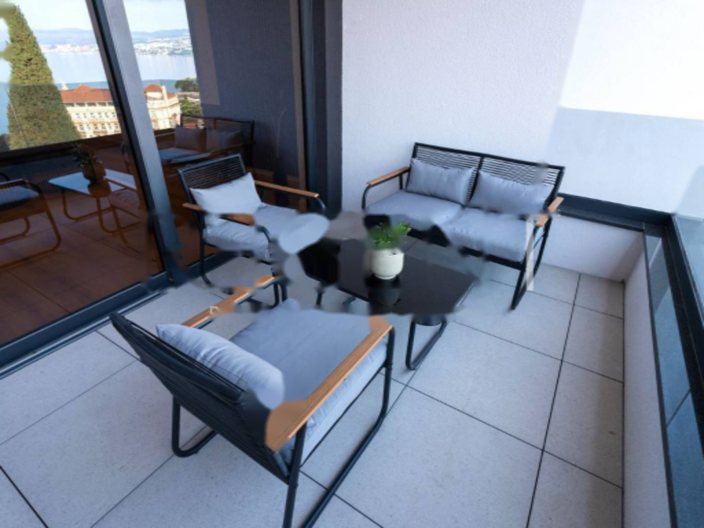 Особое внимание уделено внешним пространствам: просторный балкон и общая терраса с зоной для отдыха на свежем воздухе в любое время года. В дворе здания — общий бассейн . Также к квартире прилагаются два кладовых помещения, гаражное и внешнее парковочные места , что крайне удобно, учитывая популярность Опатии.
