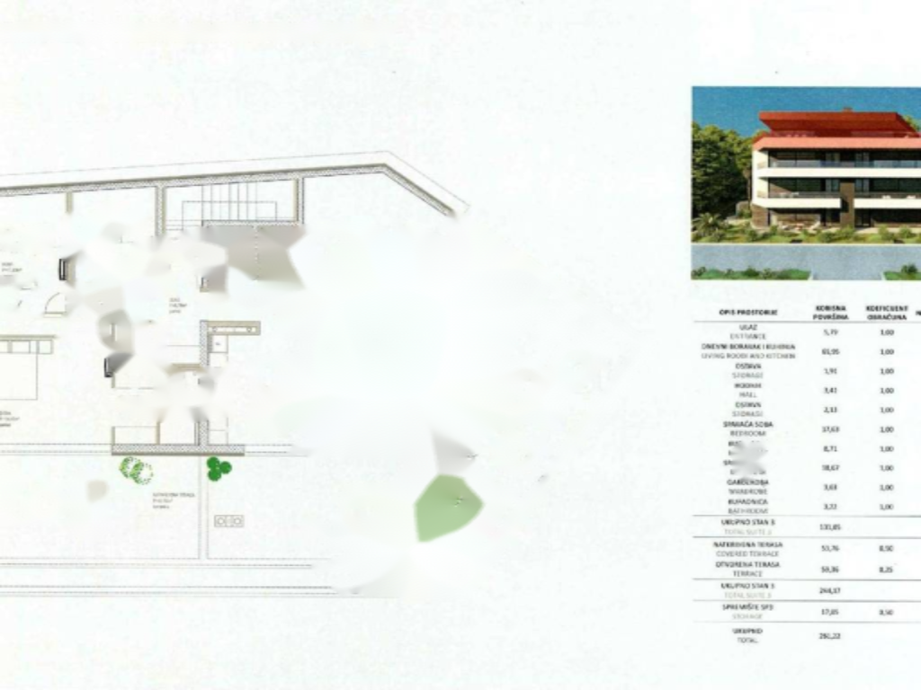 Пентхаус включает две спальни и две ванные комнаты, а также роскошную террасу. Общая площадь объекта составляет 261,22 м², из которых 181,30 м² являются полезной площадью. Внутреннее пространство занимает 131,05 м², а просторная терраса — 113,12 м². В комплекте идут просторное хранилище площадью 17,05 м² и два парковочных места в подземной гараже, что обеспечивает дополнительное удобство .