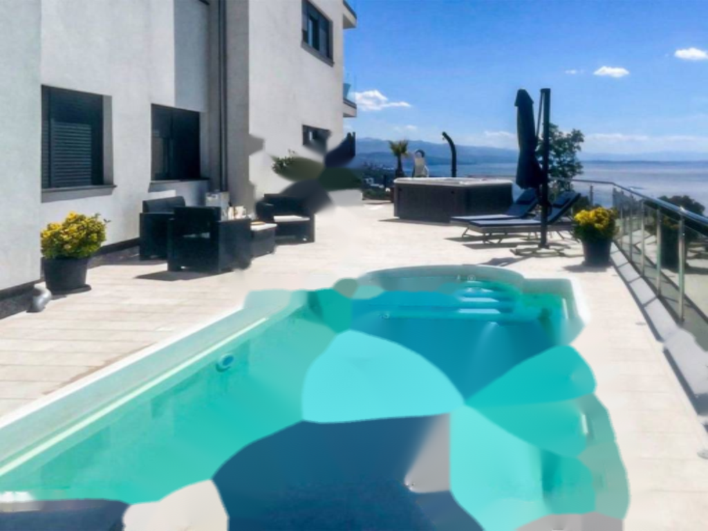 Предлагается к продаже роскошная квартира в Побрие, недалеко от Опатии, с захватывающим видом на весь Кварнер. Квартира площадью 113 м² расположена на привлекательной и спокойной локации в тупиковой улице, что обеспечивает полную приватность и тишину.