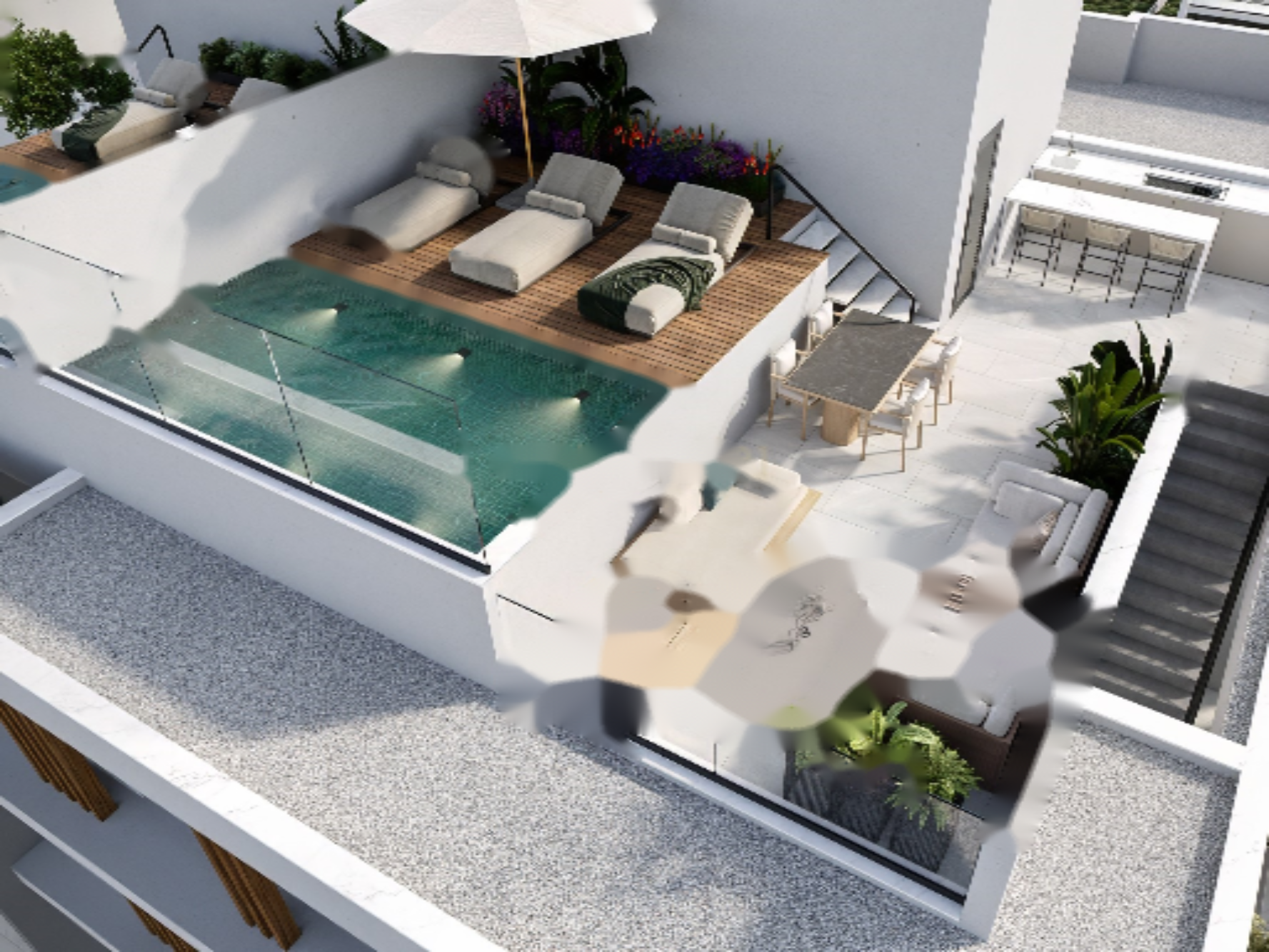 Трехкомнатная пентхаус-квартира с частным садом на крыше и бассейном, с потрясающим, ничем не закрытым видом на море. Это исключительный современный жилой комплекс, состоящий из двух пятиэтажных зданий с большим общим бассейном и красивым ландшафтным садом. Каждое здание включает в себя двух- и трехкомнатные квартиры.